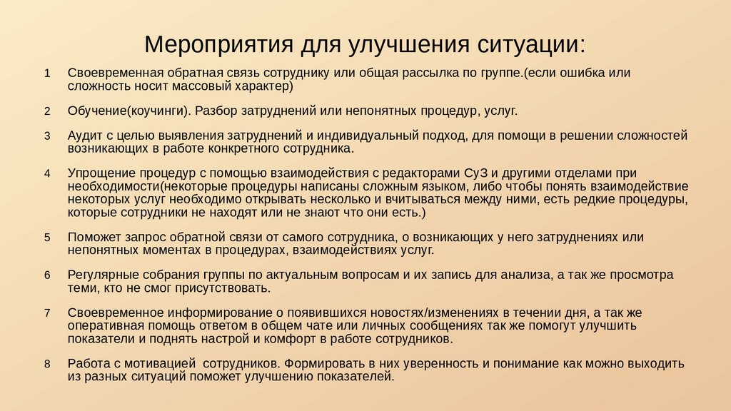 Мероприятия для улучшения ситуации:1