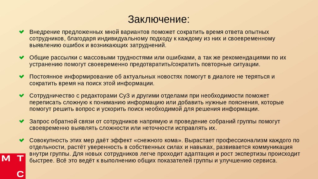 Заключение:Внедрение предложенных мной вариантов поможет сократить время ответа опытных