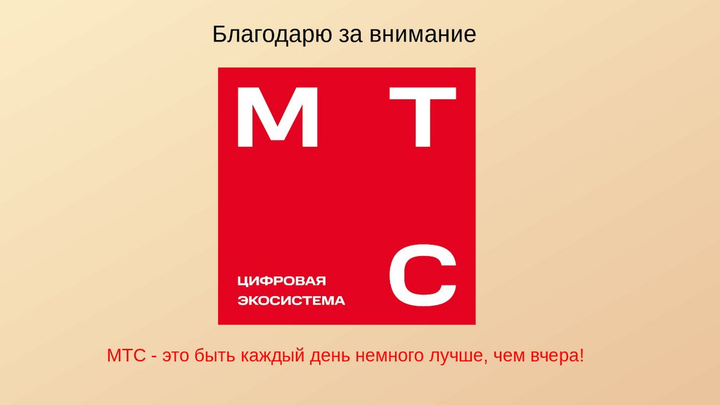 Благодарю за вниманиеМТС - это быть каждый день немного лучше, чем вчера!