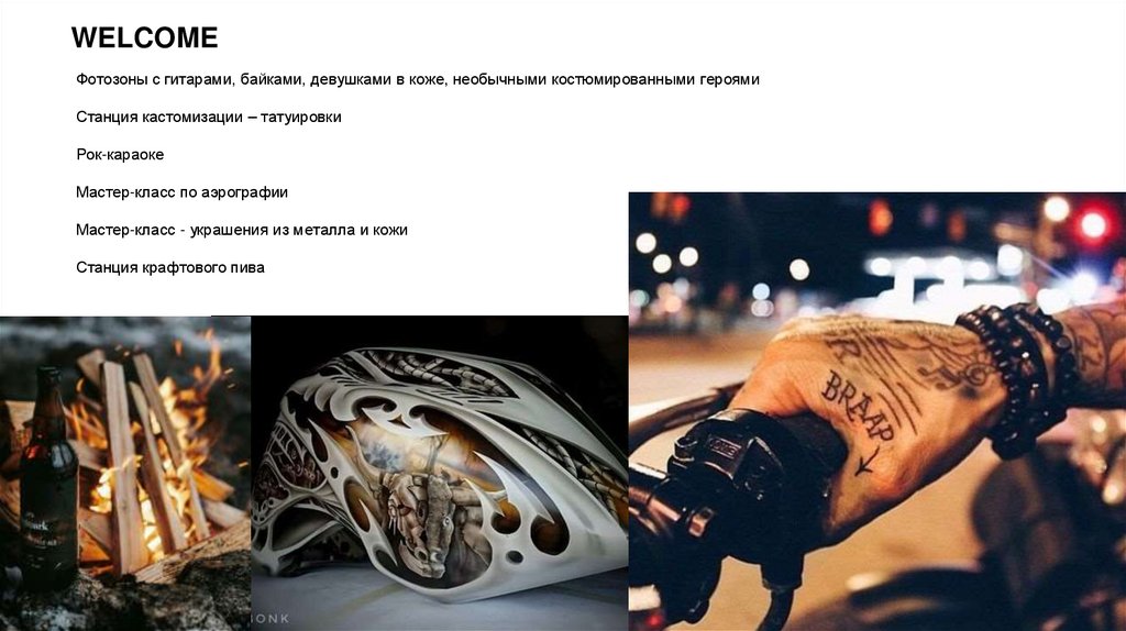 WELCOMEФотозоны с гитарами, байками, девушками в коже, необычными костюмированными героями
