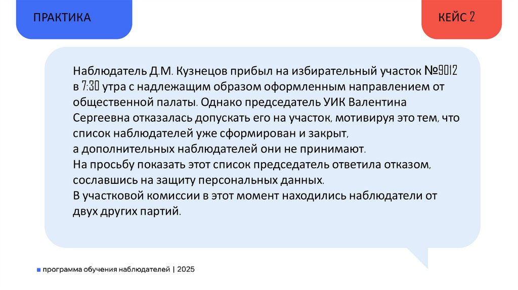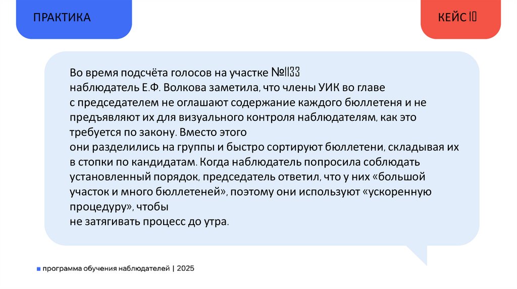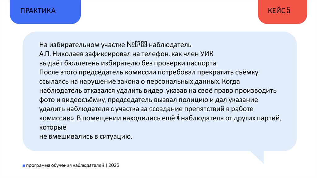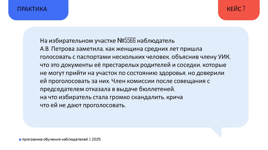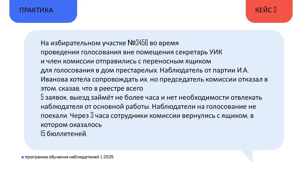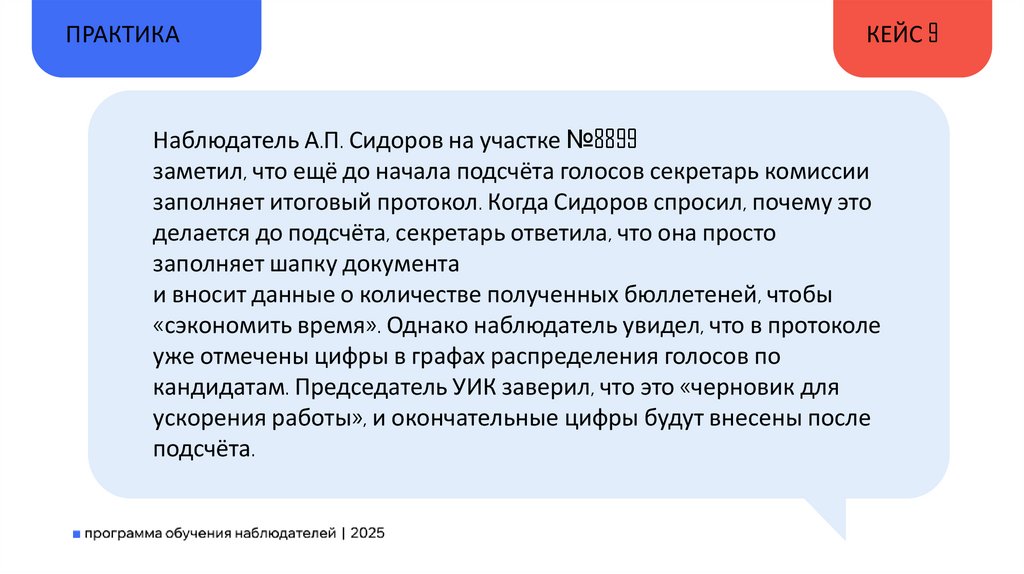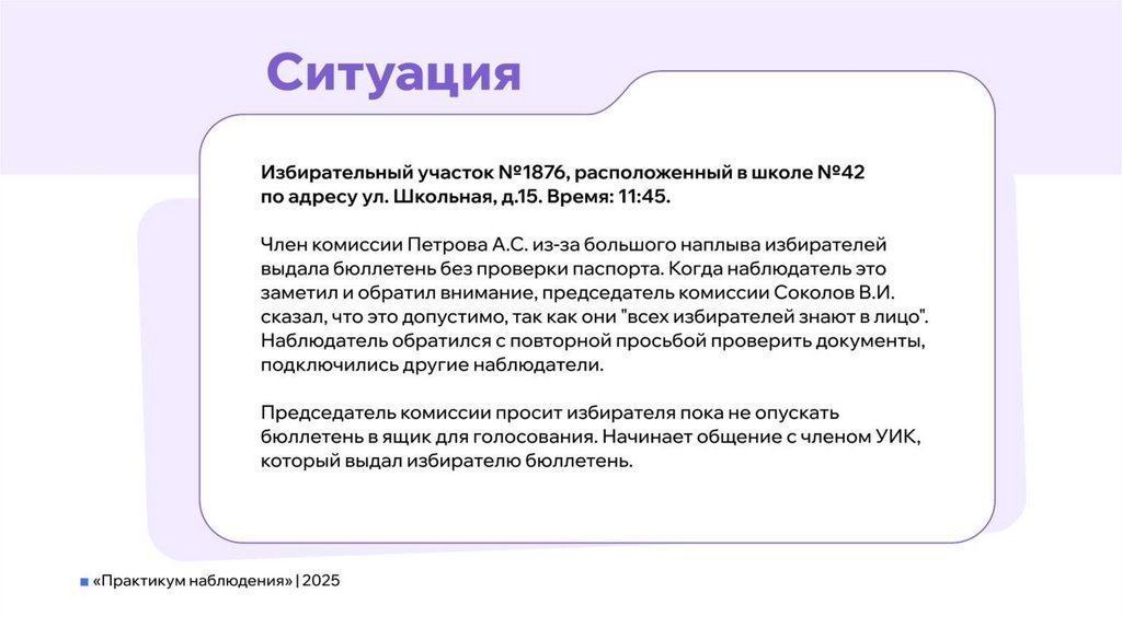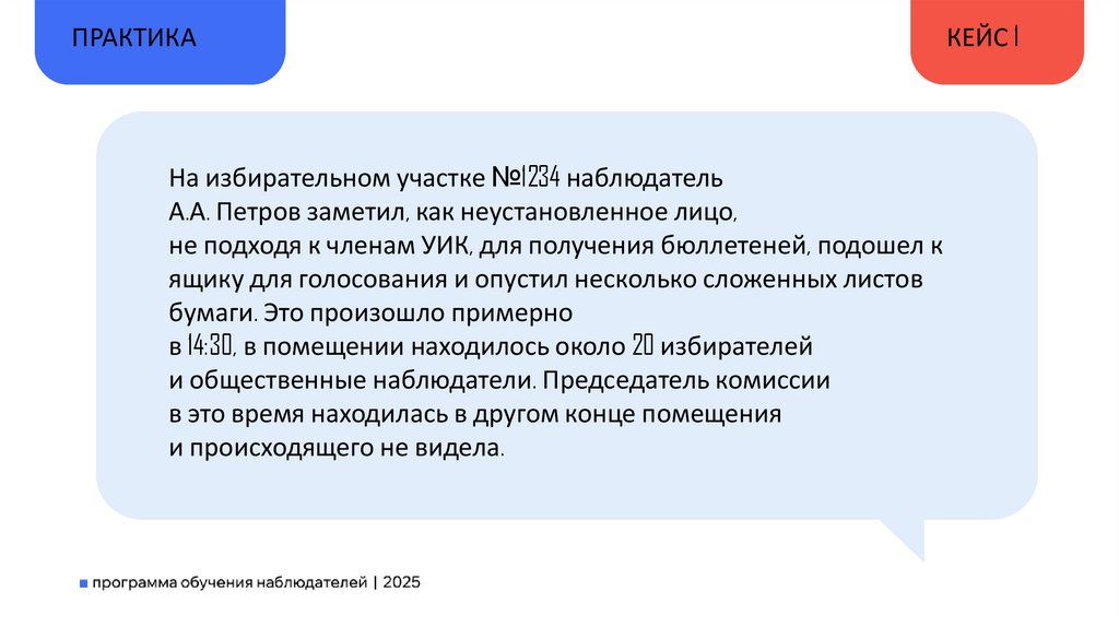 ПРАКТИКАНа избирательном участке №1234 наблюдатель