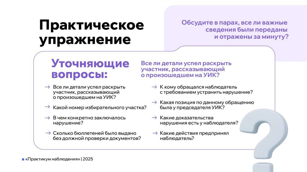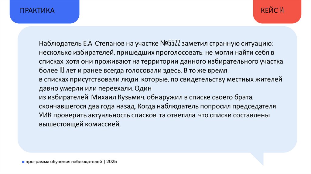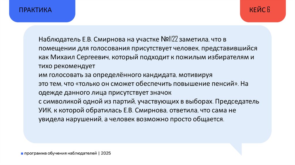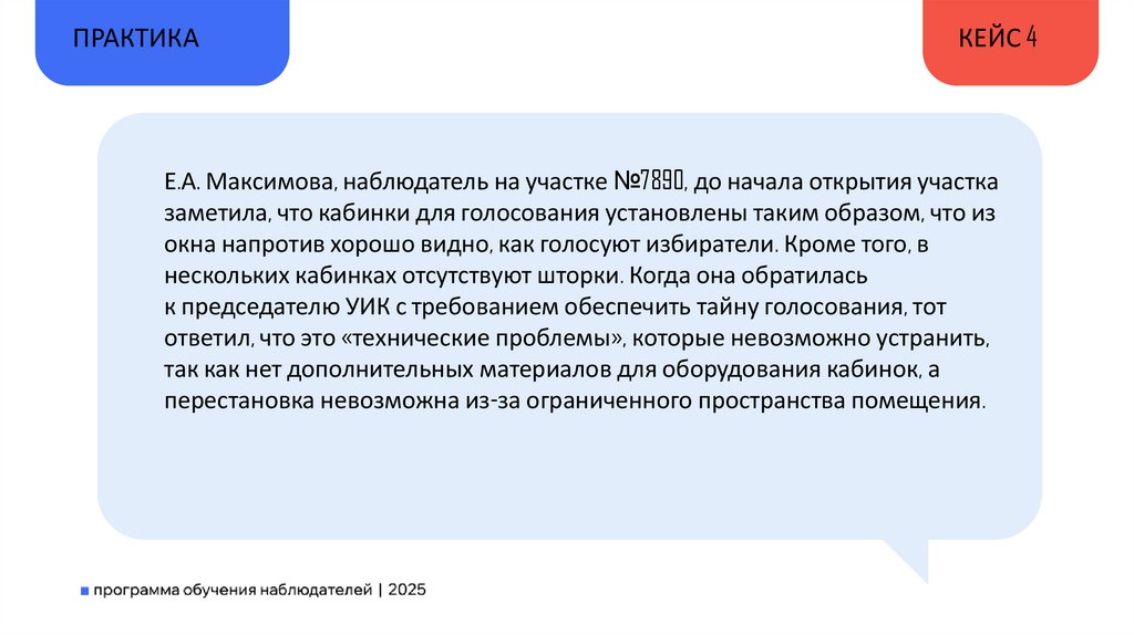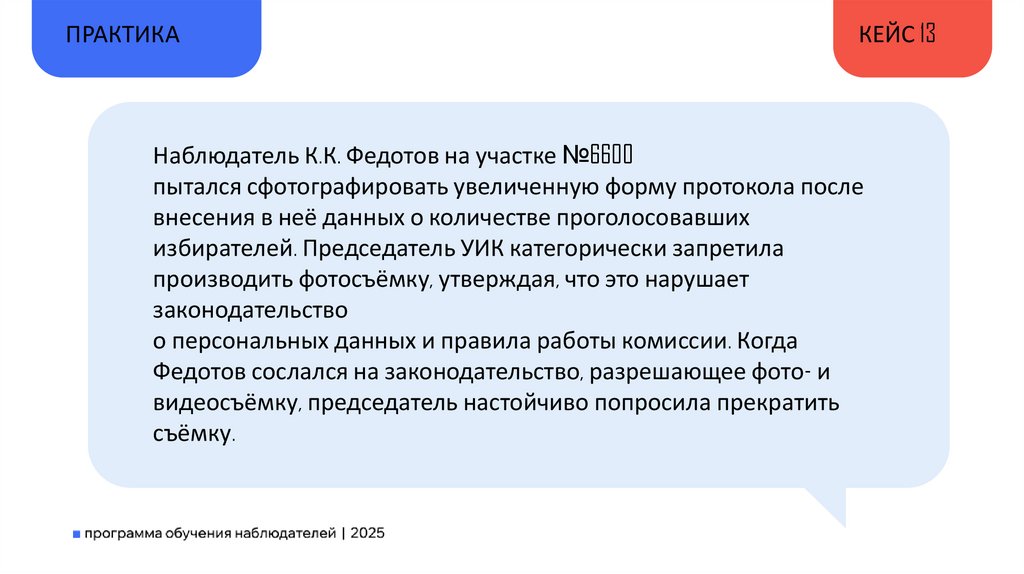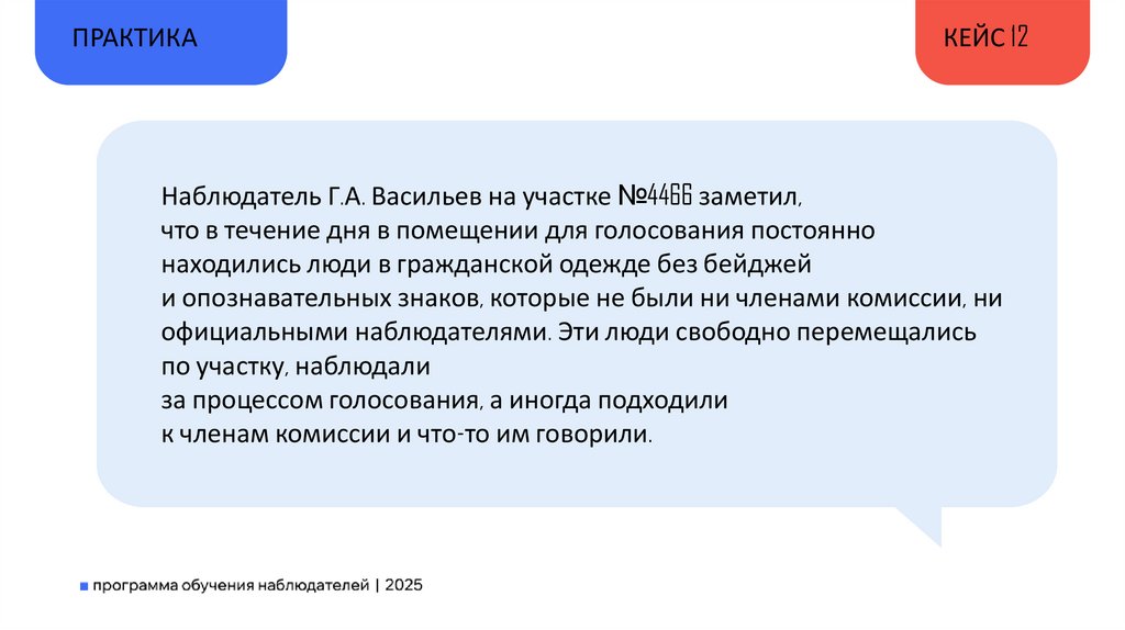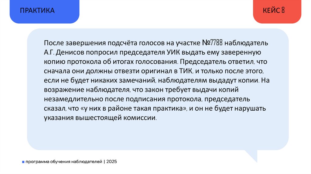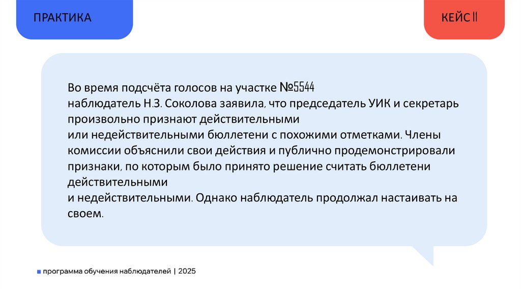 ПРАКТИКАНа избирательном участке №1234 наблюдатель