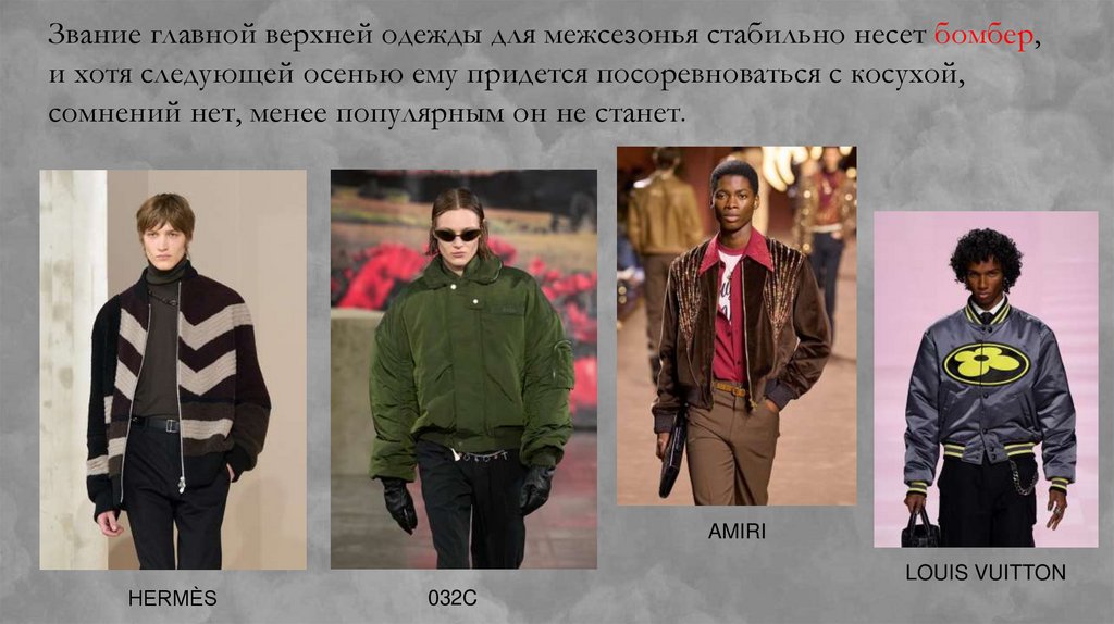 Звание главной верхней одежды для межсезонья стабильно несет бомбер,и хотя следующей осенью ему придется посоревноваться с косухой,