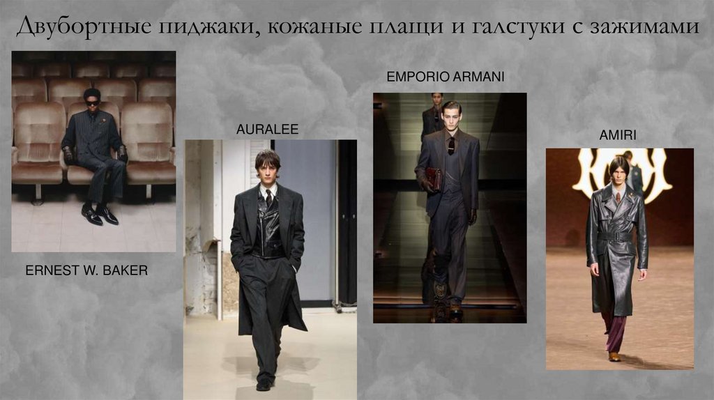 Двубортные пиджаки, кожаные плащи и галстуки с зажимамиEMPORIO ARMANI
