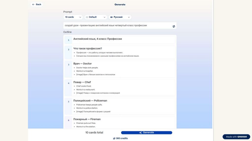 Создание урока – презентации по английскомуязыку, четвертый класс, профессии с помощью
