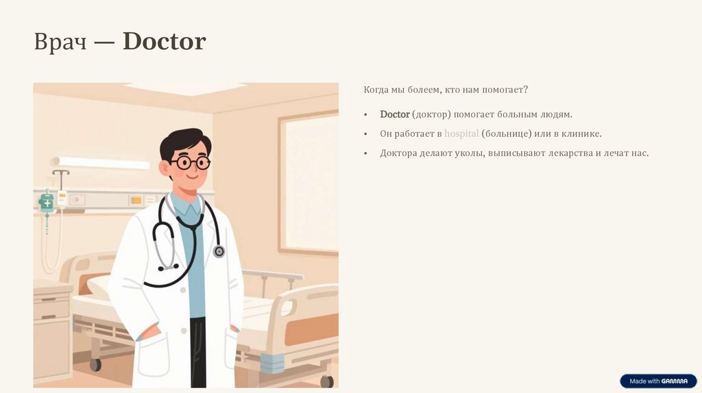 Врач — DoctorКогда мы болеем, кто нам помогает?