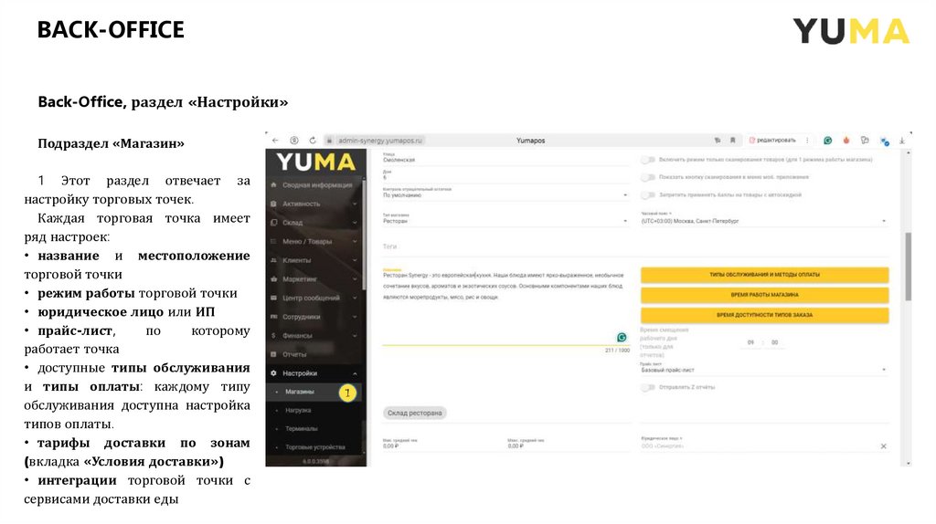 магазины, комментарии, планы, зоны, типы оплаты, статьи калькуляции