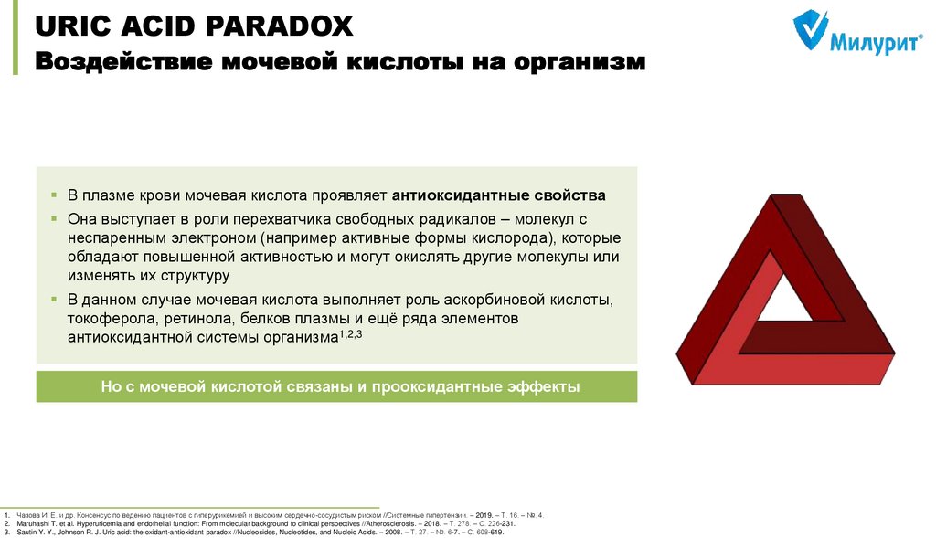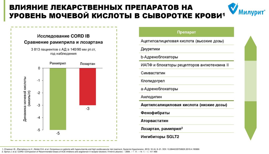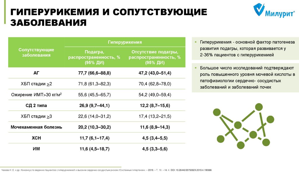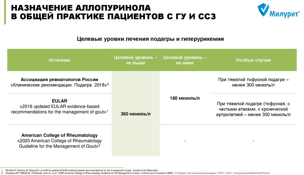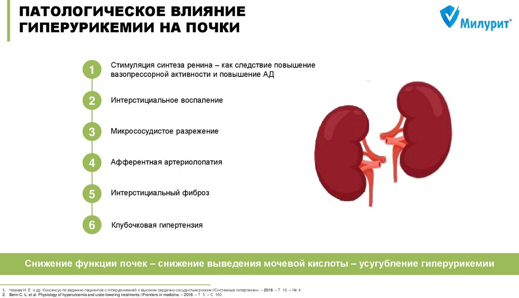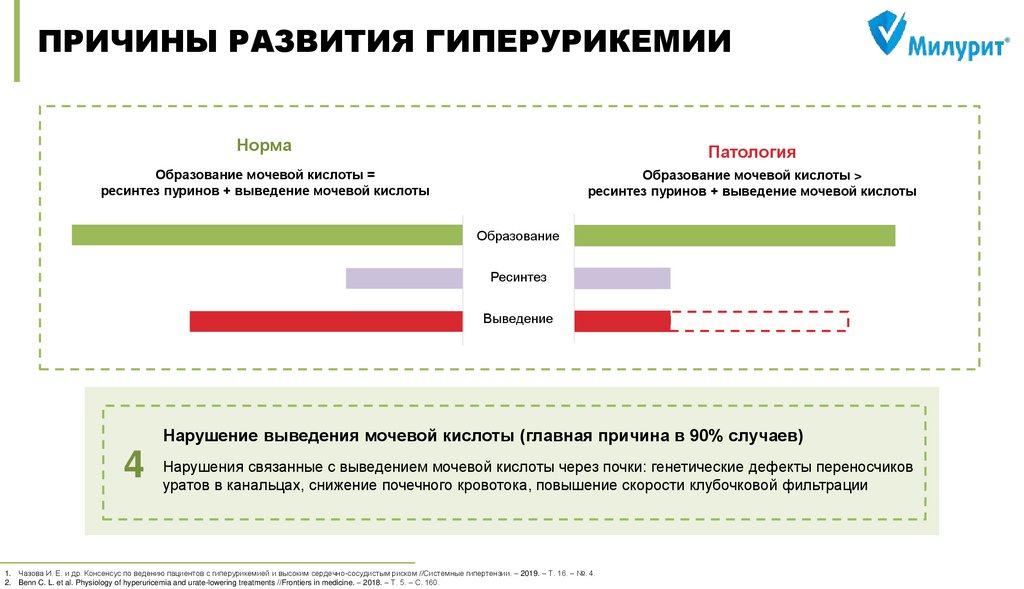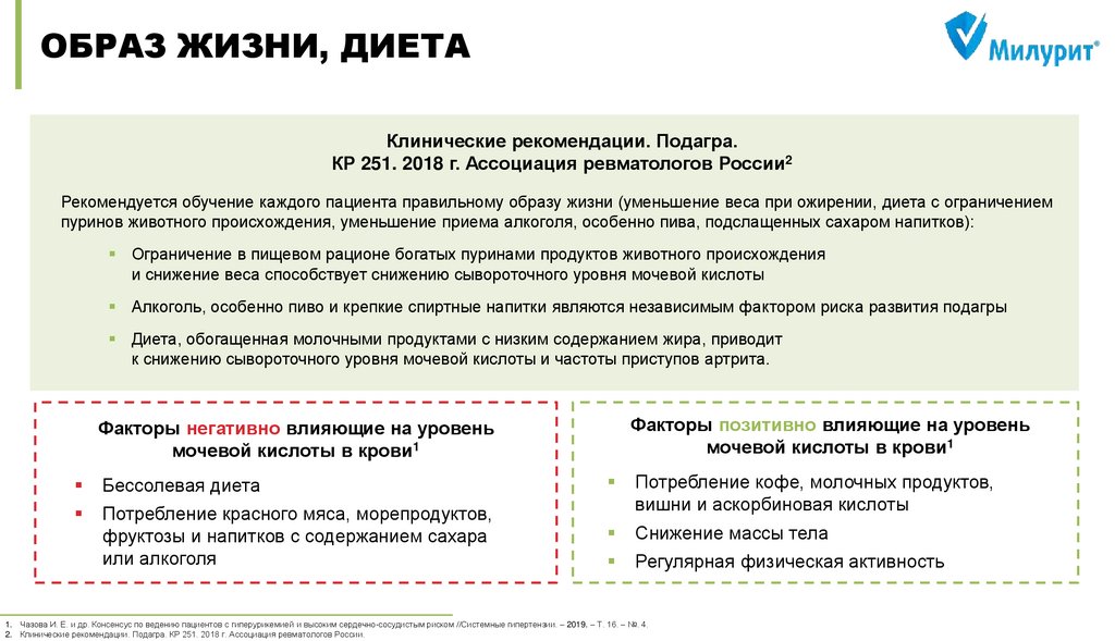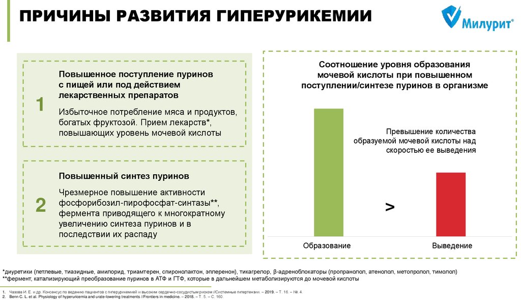 Чазова И. Е. и др. Консенсус по ведению пациентов с гиперурикемией и высоким сердечно-сосудистым риском //Системные гипертензии. – 2019. – Т. 16. – №. 4. DOI: 10.26442/2075082X.2019.4.190686