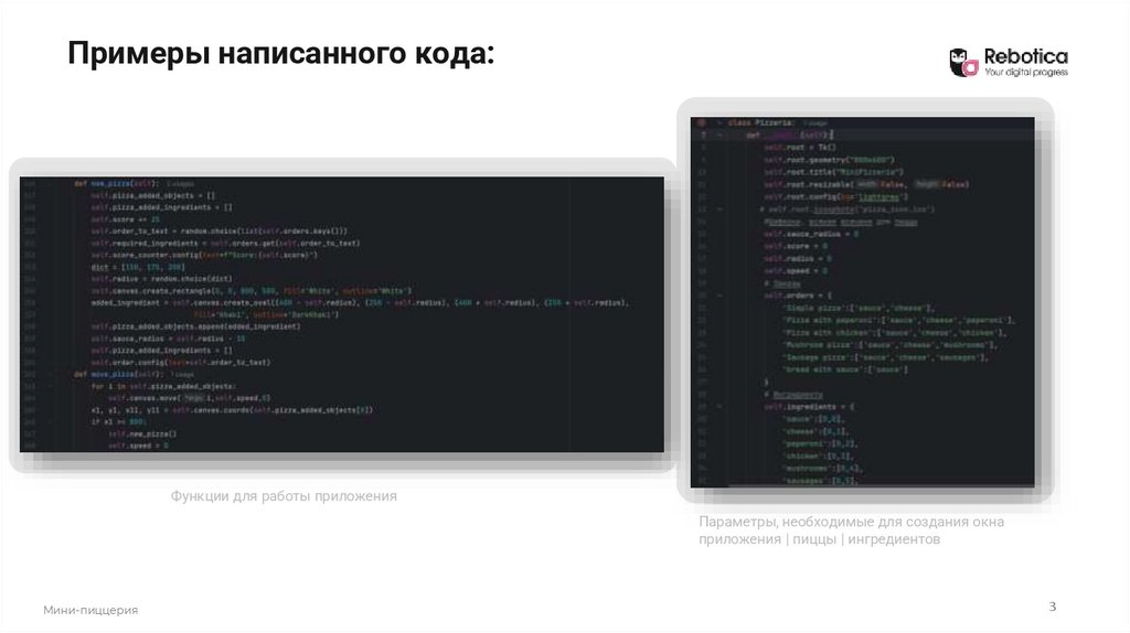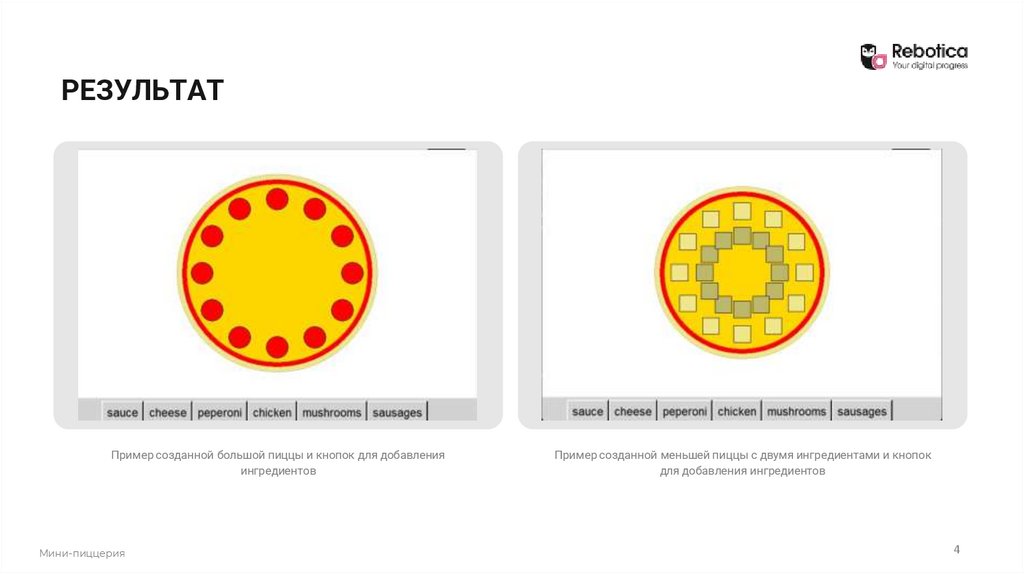 Пример созданной меньшей пиццы с двумя ингредиентами и кнопок