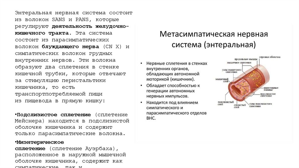 Энтеральная нервная система состоитиз волокон SANS и PANS, которые