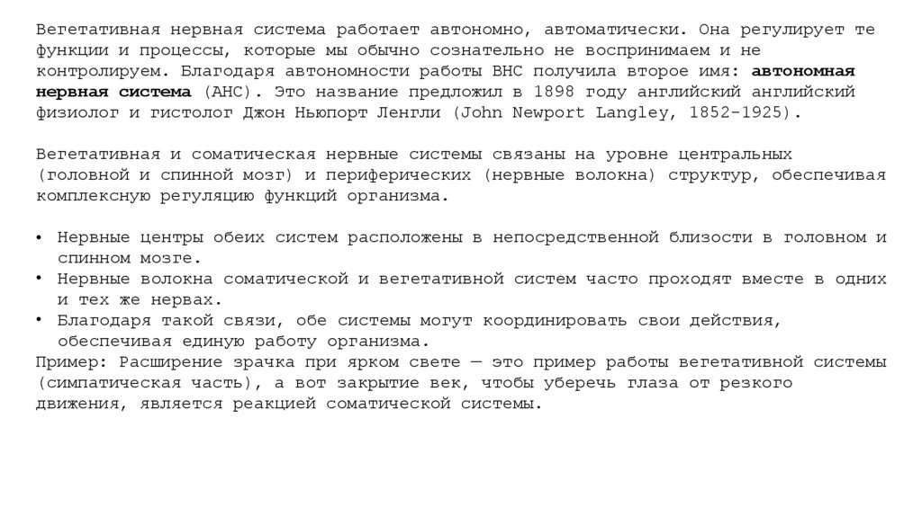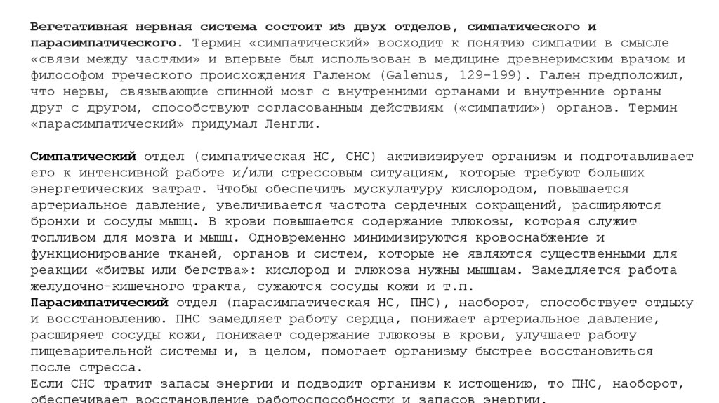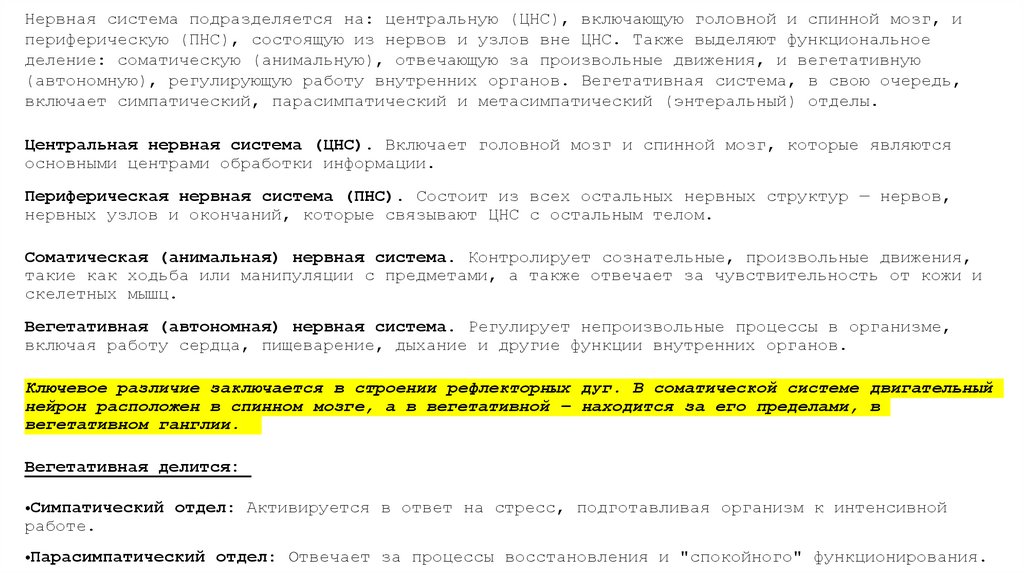 деление: соматическую (анимальную), отвечающую за произвольные движения, и вегетативную