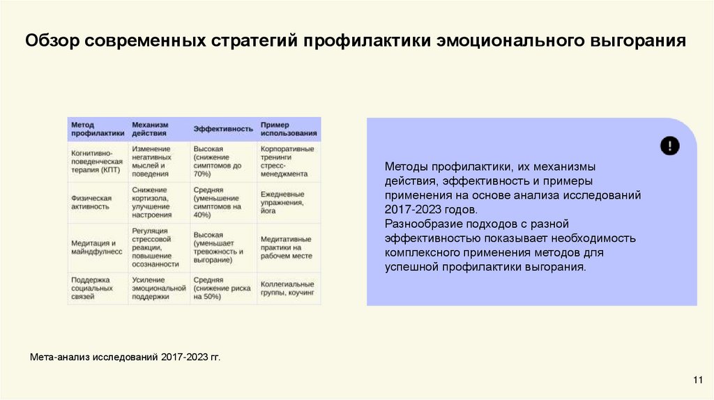 Обзор современных стратегий профилактики эмоционального выгоранияМетоды профилактики, их механизмы