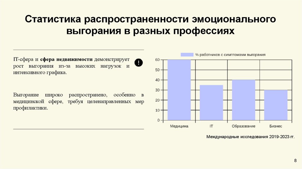 Статистика распространенности эмоциональноговыгорания в разных профессиях