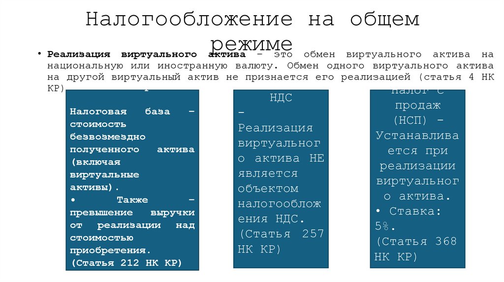 • Реализация виртуального актива – это обмен виртуального актива нанациональную или иностранную валюту. Обмен одного виртуального актива