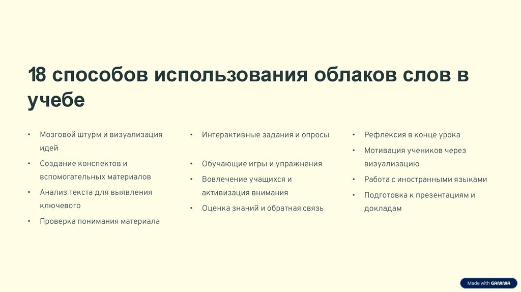 18 способов использования облаков слов вучебе