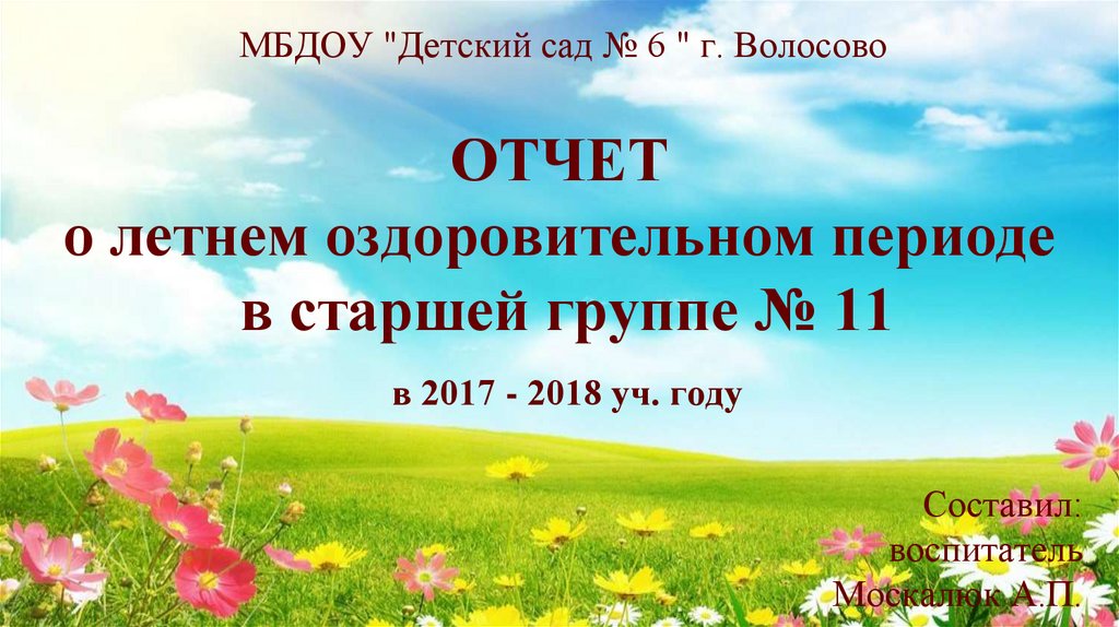 1. ОТЧЕТ о летнем оздоровительном периоде в старшей группе № 11 в 2017 - 2018 уч. году