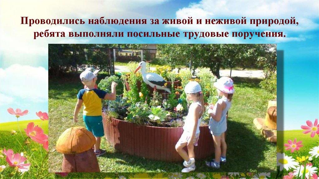 12. Проводились наблюдения за живой и неживой природой, ребята выполняли посильные трудовые поручения.