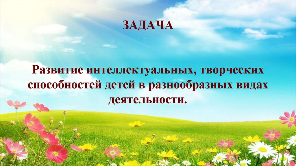 13. ЗАДАЧА Развитие интеллектуальных, творческих способностей детей в разнообразных видах деятельности.