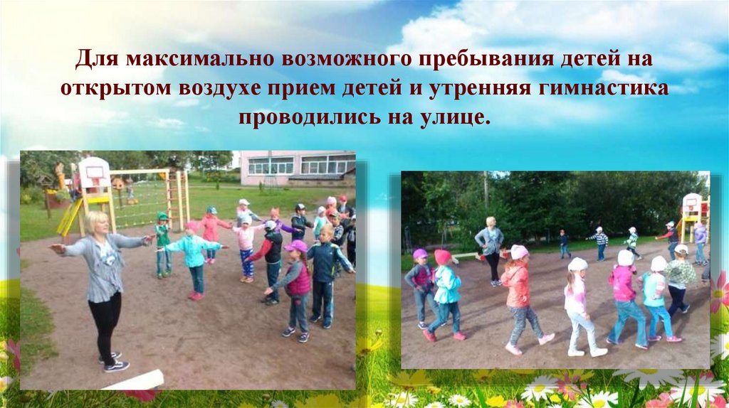 7. Для максимально возможного пребывания детей на открытом воздухе прием детей и утренняя гимнастика проводились на улице.