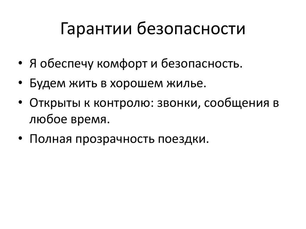 Гарантии безопасности• Я обеспечу комфорт и безопасность.