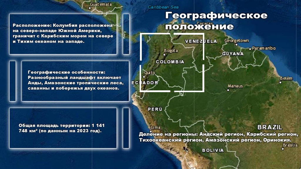 Расположение: Колумбия расположенана северо-западе Южной Америки,