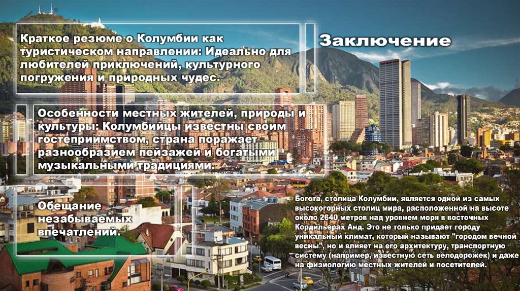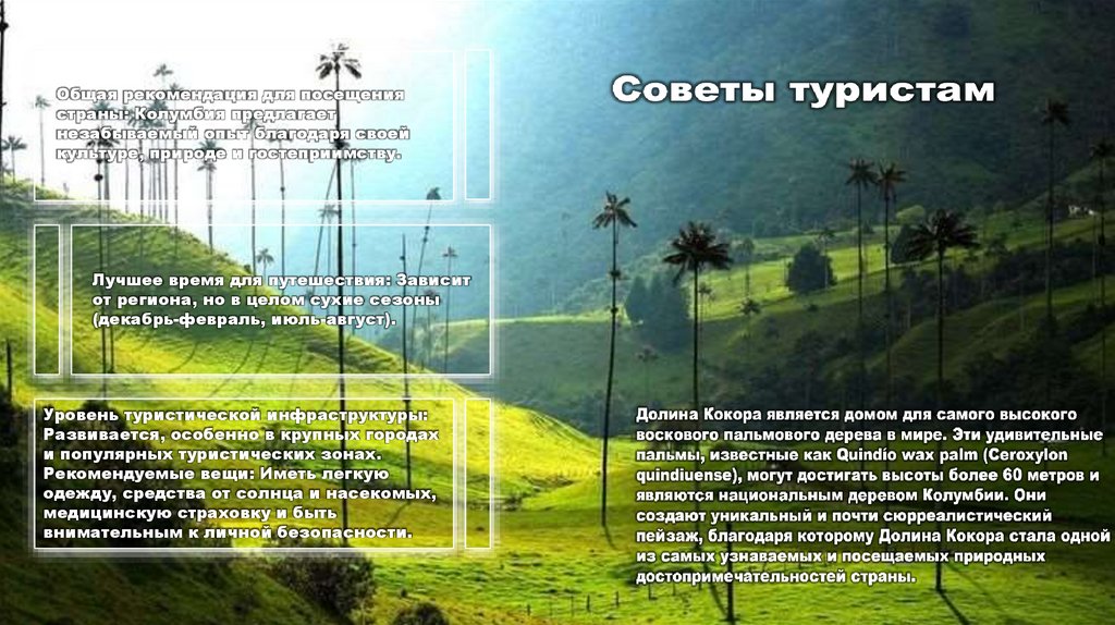 Общая рекомендация для посещениястраны: Колумбия предлагает
