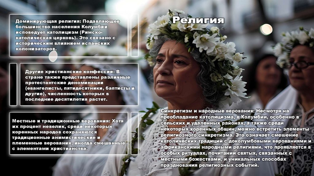Доминирующая религия: Подавляющеебольшинство населения Колумбии