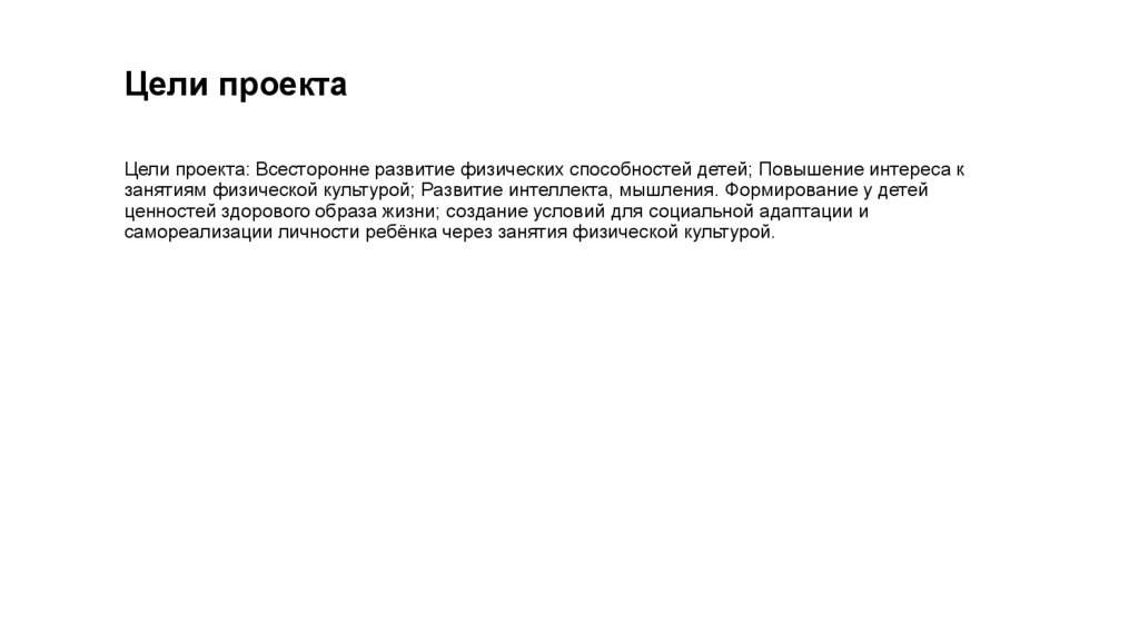 Цели проектаЦели проекта: Всесторонне развитие физических способностей детей; Повышение интереса к