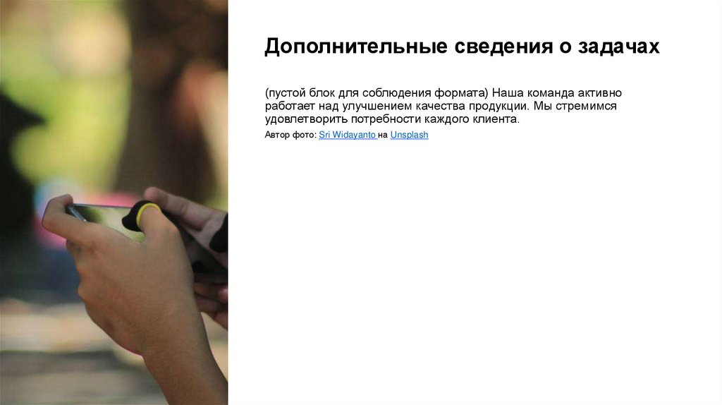 Дополнительные сведения о задачах(пустой блок для соблюдения формата) Наша команда активно