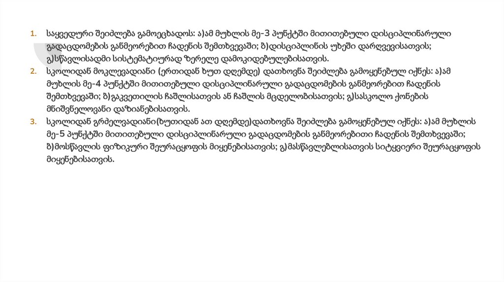 ე)სასკოლო ქონების უმნიშვნელო დაზიანებისათვის ვ)ტელეფონის გამოყენებისთვის