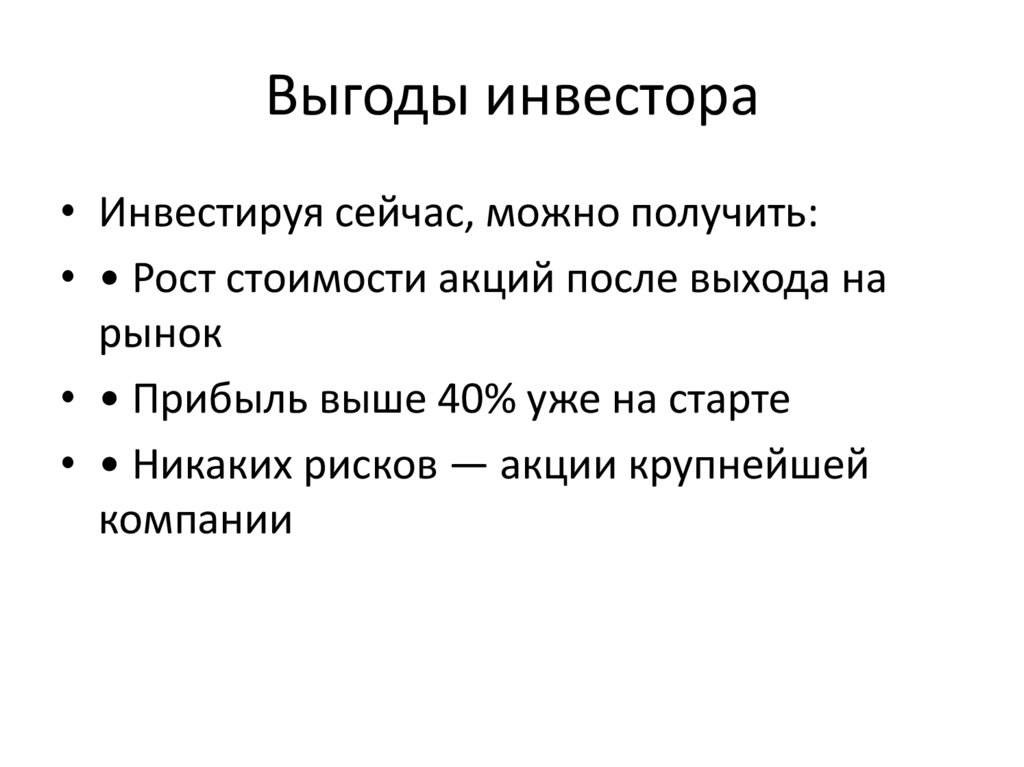 Выгоды инвестора• Инвестируя сейчас, можно получить: