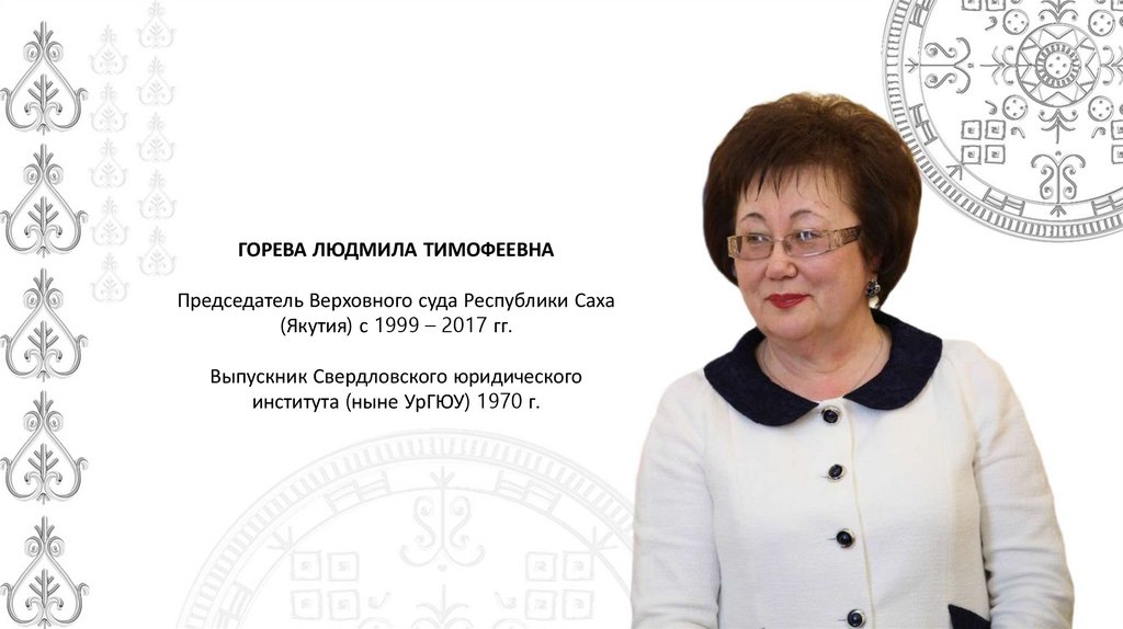 ГОРЕВА ЛЮДМИЛА ТИМОФЕЕВНАПредседатель Верховного суда Республики Саха