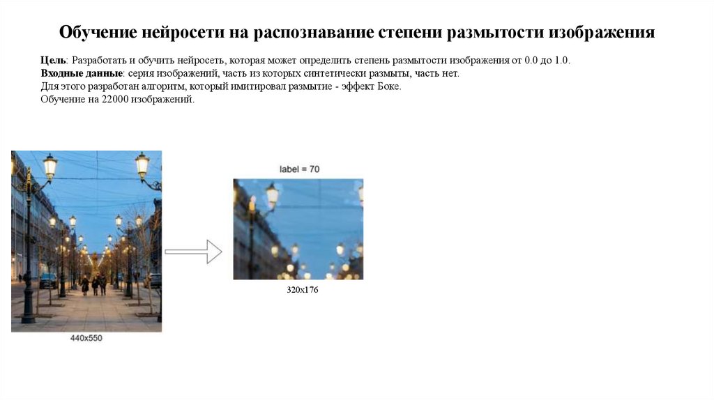 Обучение нейросети на распознавание степени размытости изображения. Входные данные