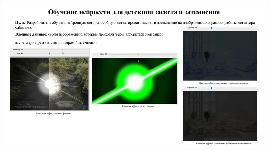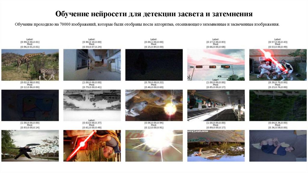 Обучение нейросети для детекции засвета и затемненияЦель: Разработать и обучить нейронную сеть, способную детектировать засвет и затемнение на изображениях в рамках работы детектора
