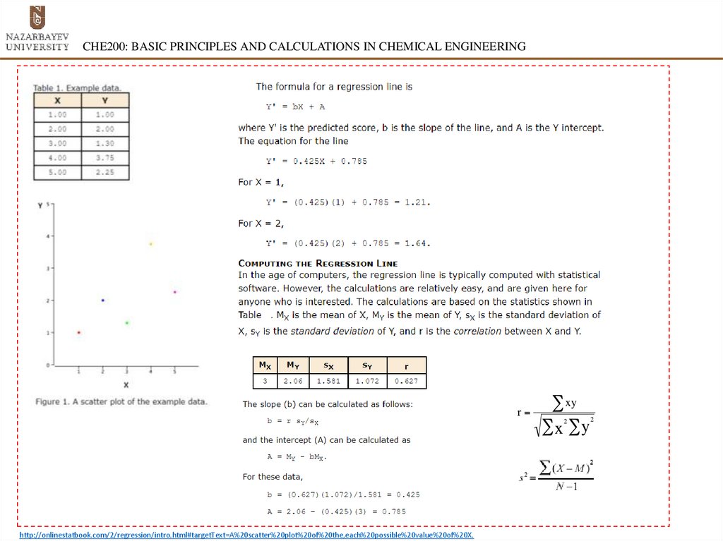 CHE200: BASIC PRINCIPLES AND CALCULATIONS IN CHEMICAL ENGINEERINGhttp://onlinestatbook.com/2/regression/intro.html#targetText=A%20scatter%20plot%20of%20the,each%20possible%20value%20of%20X.