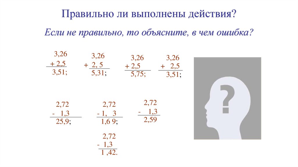 Правильно ли выполнены действия?Если не правильно, то объясните, в чем ошибка?