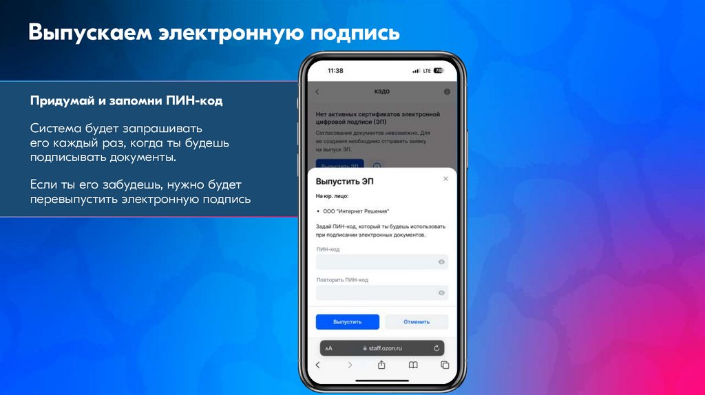 Выпускаем электронную подписьПерейди по ссылке https://staff.ozon.ru