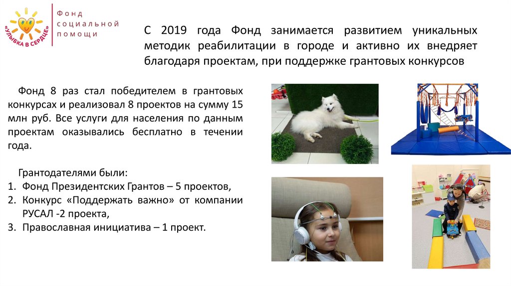 С 2019 года Фонд занимается развитием уникальныхметодик реабилитации в городе и активно их внедряет