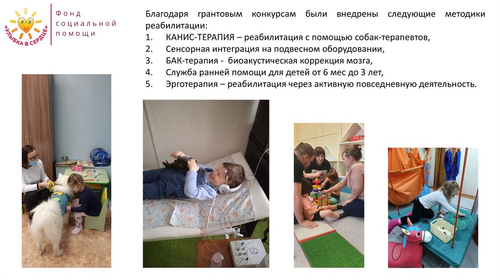 Благодаря грантовым конкурсам были внедрены следующие методикиреабилитации: