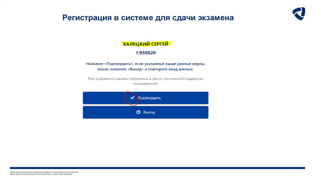 Регистрация в системе для сдачи экзаменаЛюбое несанкционированное копирование, раскрытие или распространение материалов,