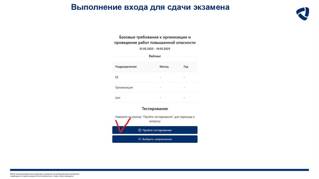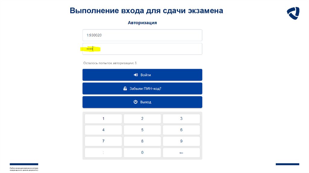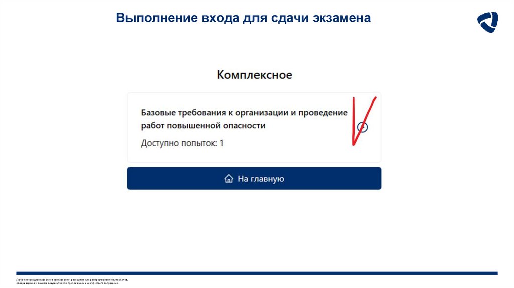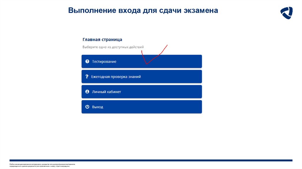 Выполнение входа для сдачи экзаменаЛюбое несанкционированное копирование, раскрытие или распространение материалов,