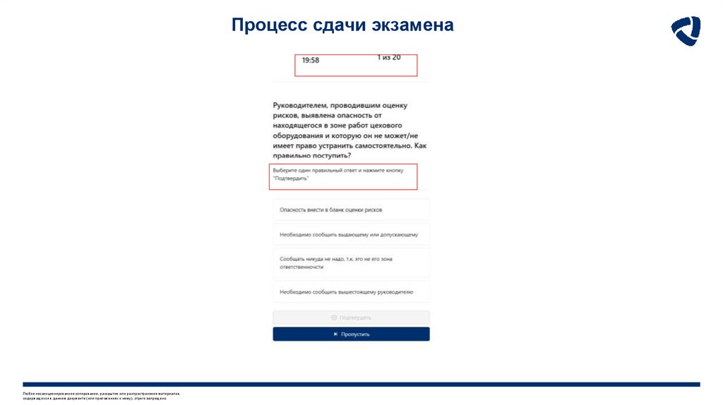 Процесс сдачи экзаменаЛюбое несанкционированное копирование, раскрытие или распространение материалов,