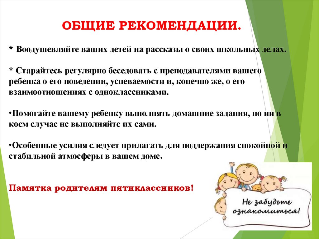 ОБЩИЕ РЕКОМЕНДАЦИИ.* Воодушевляйте ваших детей на рассказы о своих школьных делах.