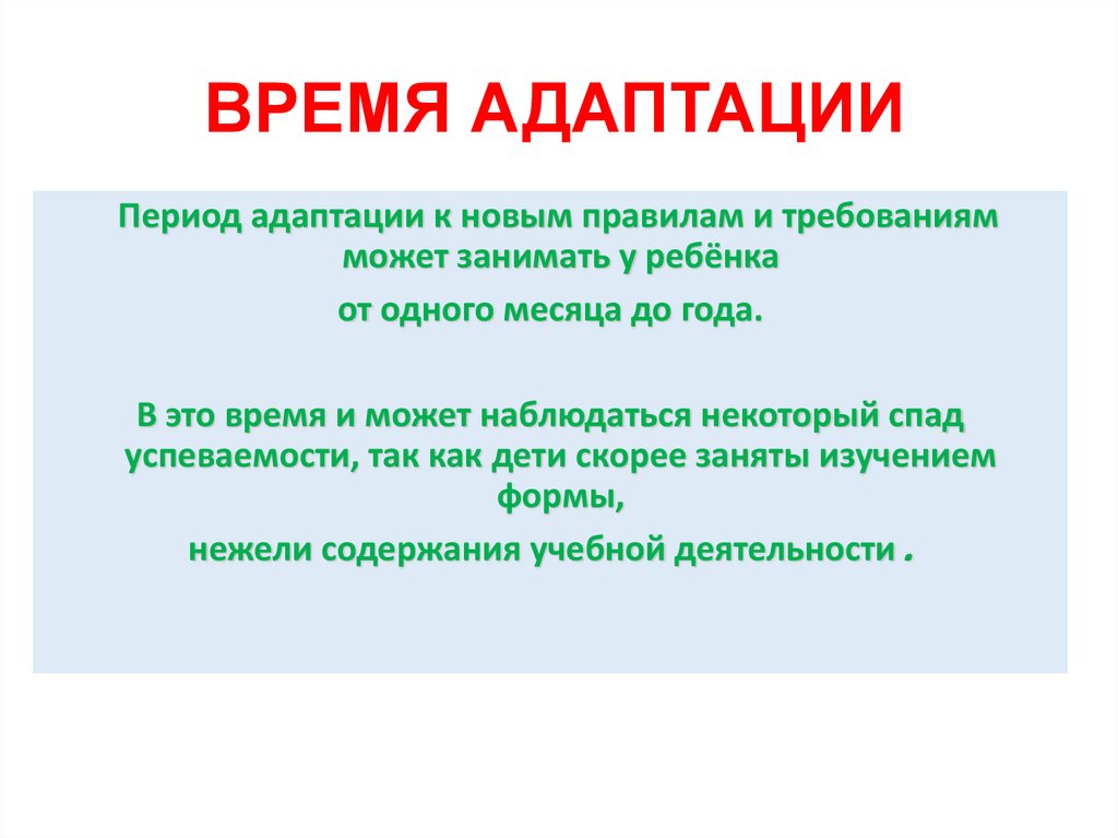 ВРЕМЯ АДАПТАЦИИПериод адаптации к новым правилам и требованиям
