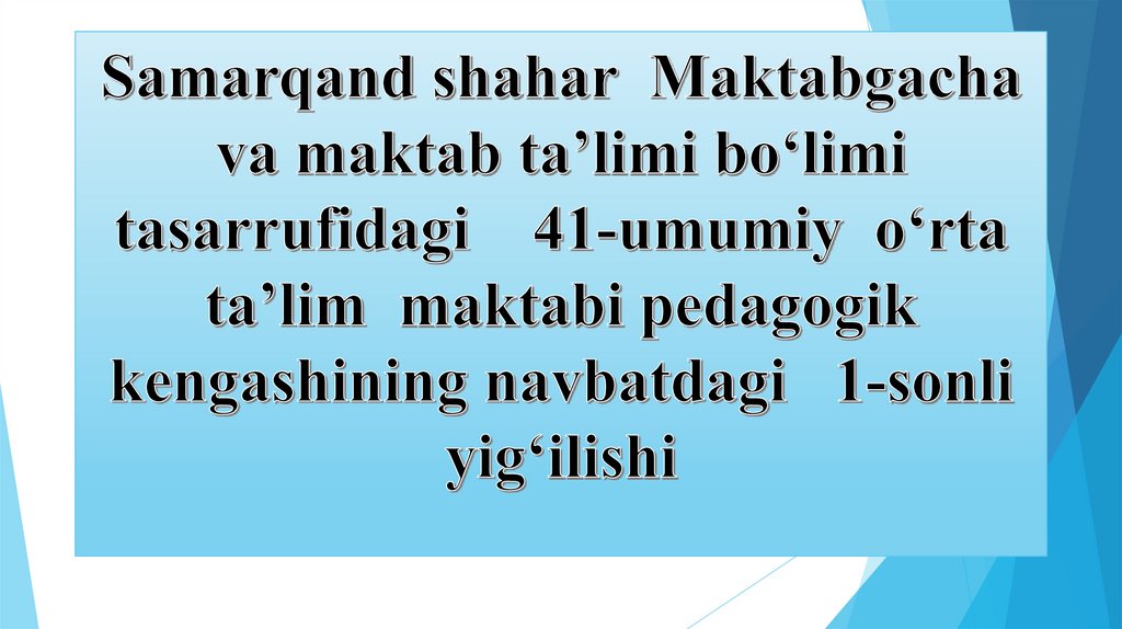1. Samarqand shahar Maktabgacha va maktab ta’limi bo‘limi tasarrufidagi 41-umumiy o‘rta ta’lim maktabi pedagogik kengashining