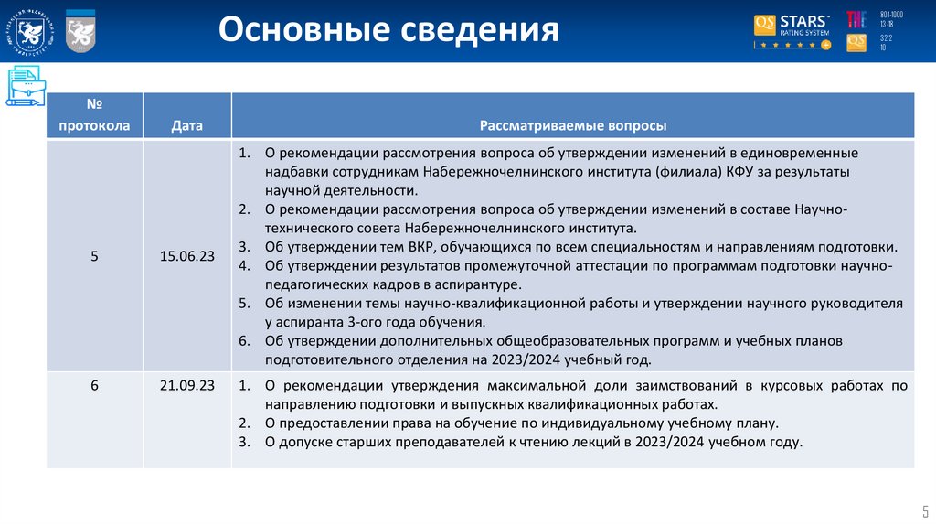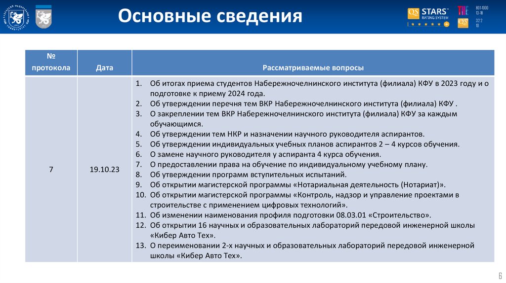 1. Об итогах приема студентов Набережночелнинского института (филиала) КФУ в 2023 году и о