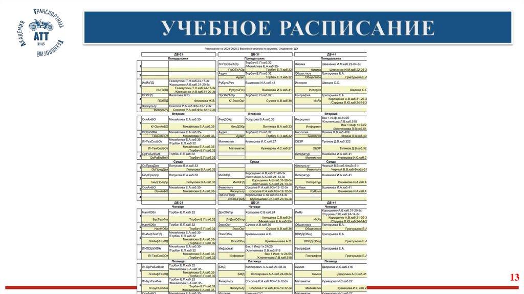 12. УЧЕБНОЕ РАСПИСАНИЕ