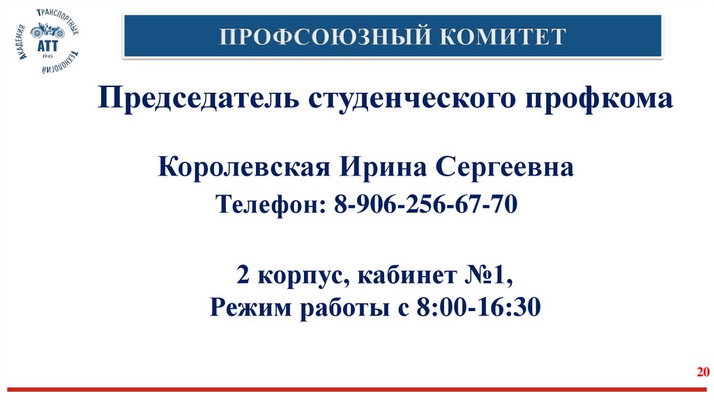 Председатель студенческого профкомаКоролевская Ирина Сергеевна