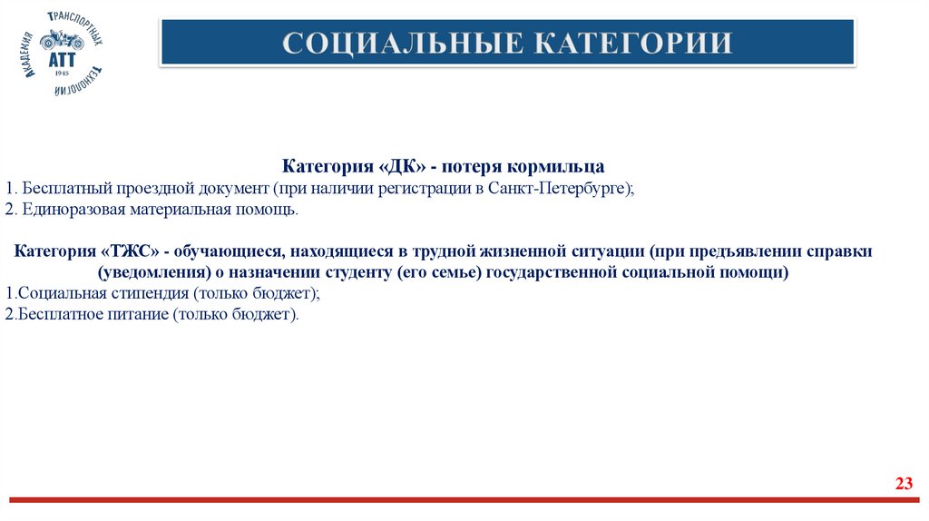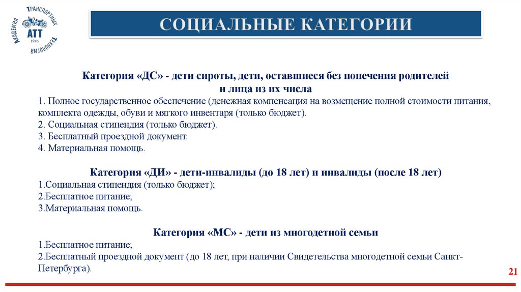 Категория «ДК» - потеря кормильца1. Бесплатный проездной документ (при наличии регистрации в Санкт-Петербурге);