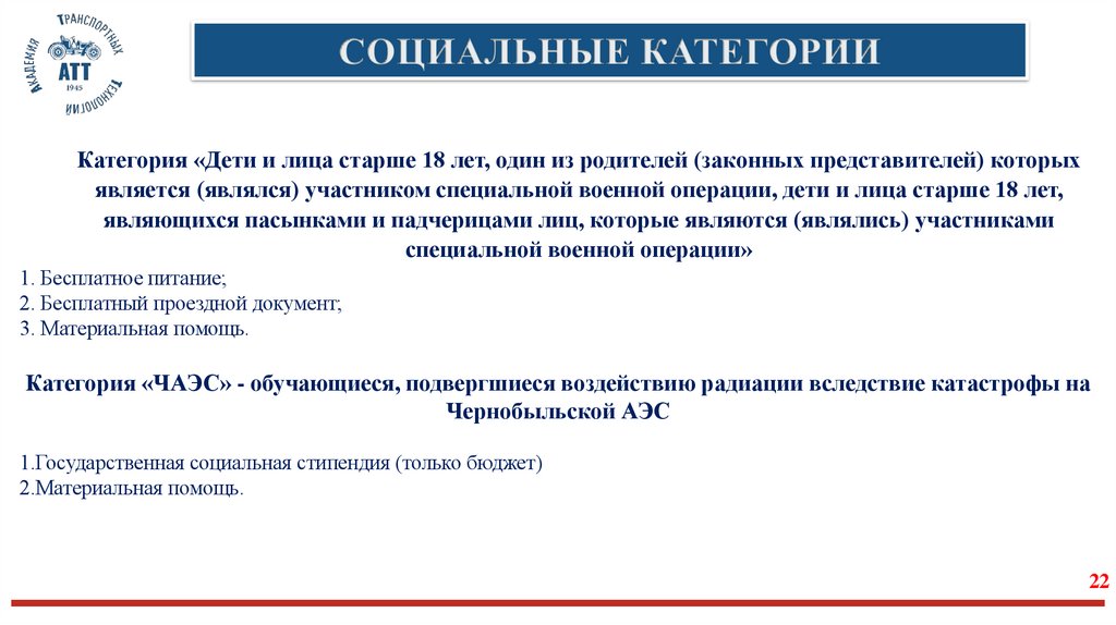 Категория «Дети и лица старше 18 лет, один из родителей (законных представителей) которыхявляется (являлся) участником специальной военной операции, дети и лица старше 18 лет,